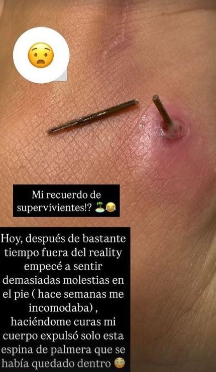 Pronto lo reveló: "Haciéndome curas mi cuerpo expulsó solo esta espina de palmera que se había quedado dentro".
