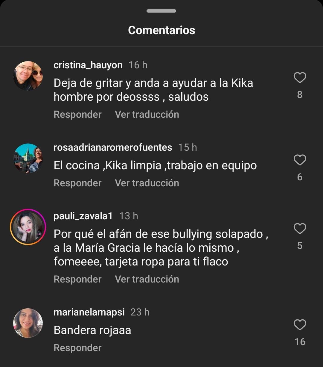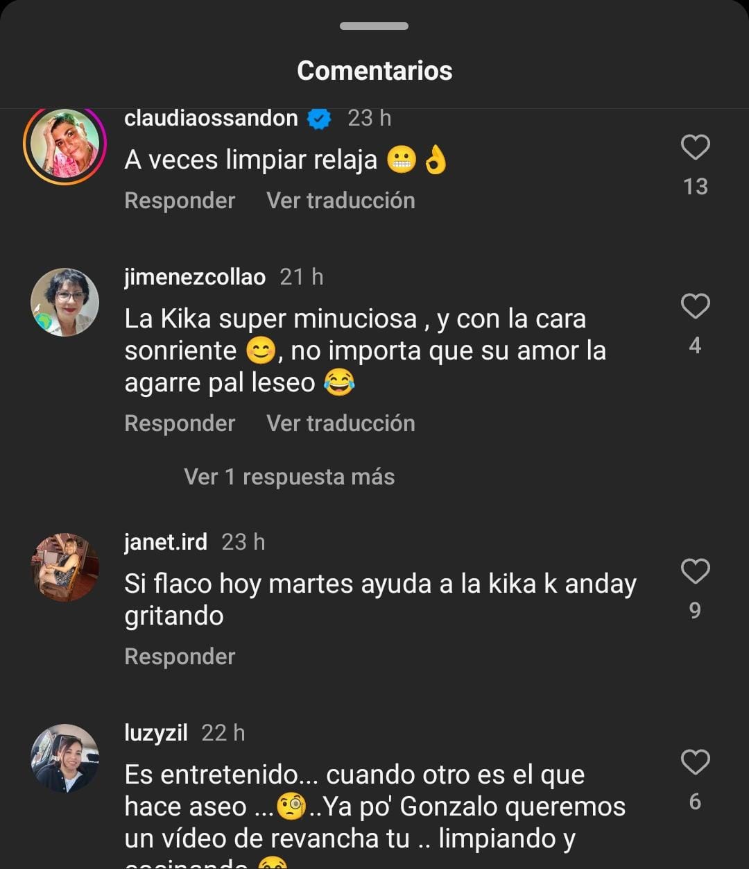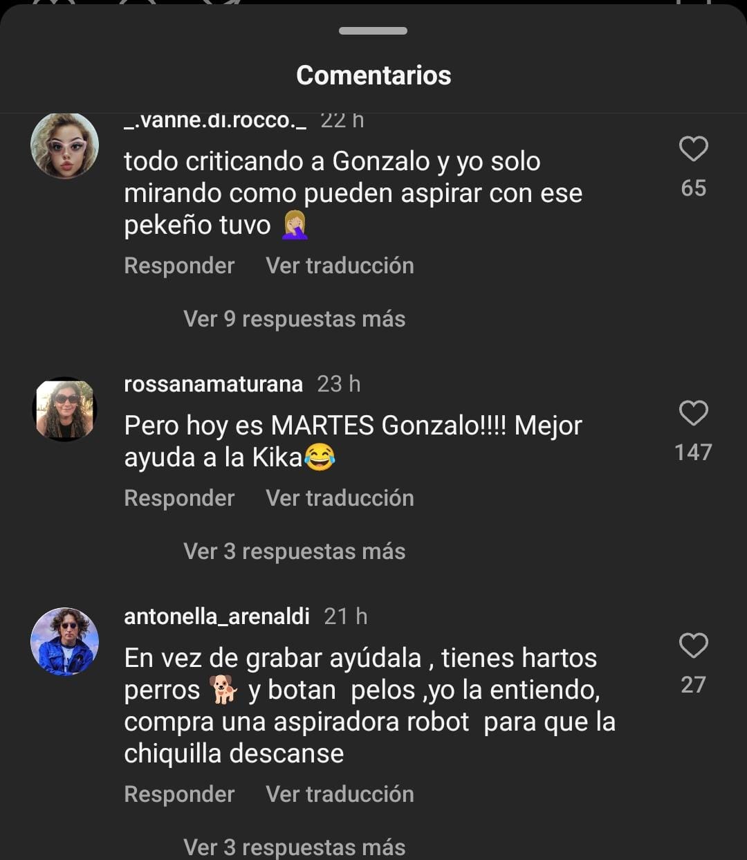 "El perrito no entiende por qué tanto grito", "La Kika súper minuciosa y con la cara sonriente", "Pero es martes, Gonzalo. Mejor ayuda a la Kika", "En vez de grabar, ayúdala. Tienes hartos perros y botan pelos", fueron algunos de los comentarios que recibió el actor.