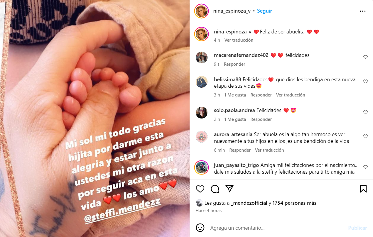 Si bien ni la madre ni el abuelo de la guagua han hecho publicaciones en torno al nacimiento, este último, DJ Méndez, fue uno de los primeros en reaccionar cuando Steffi anunció el embarazo.