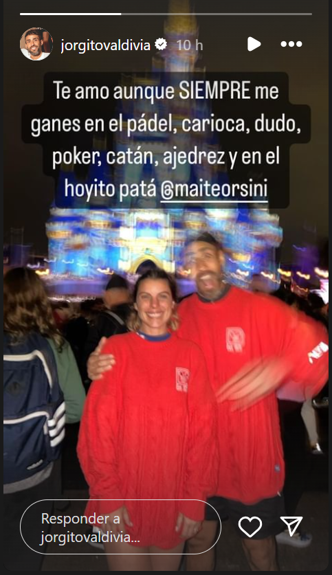 aunque SIEMPRE me ganes en el pádel, carioca, ludo, póker, catán, ajedrez y en el hoyito pata”, compartió la ex pareja de Daniela Aránguiz en sus historias de