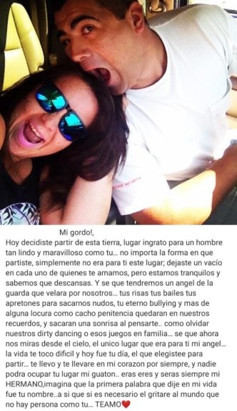 "Eras, eres y serás siempre mi hermano. Imagina que la primera palabra que dije en mi vida fue tu nombre. Así que, si es necesario, le gritaré al mundo que no hay persona como tú. Te amo", sentenció, adjuntando una fotografía de ella junto a su hermano.