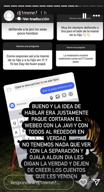 Al respecto, el hijo de Luis Jiménez señaló a través de Instagram: "La idea de hablar era justamente para que cortaran el hue... con la Javi y con todos alrededor en verdad".
