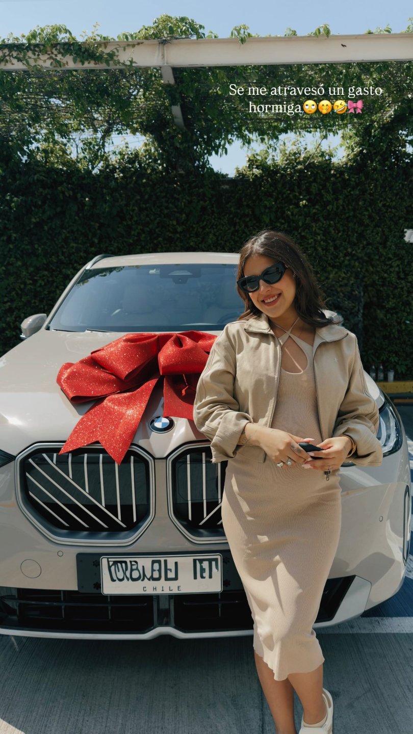 A través de Instagram, Ignacia Antonia publicó una foto y un video en los que muestra que se autoobsequió un vehículo de alta gama marca BMW color beige.