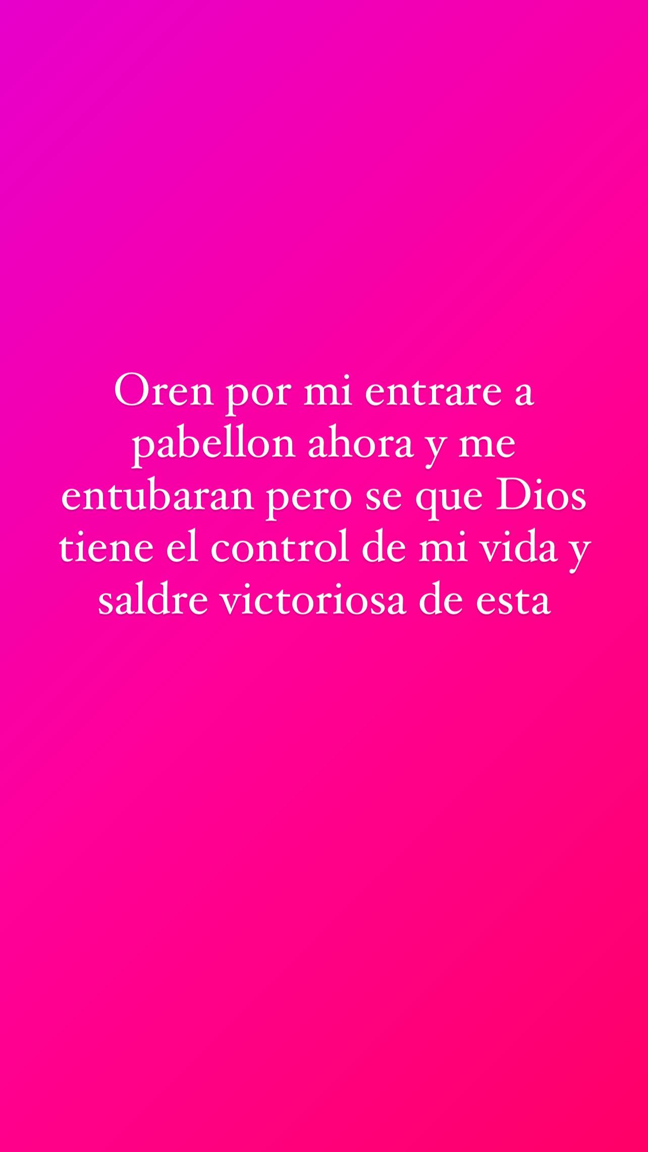 Yo sé que esto es un proceso en mi vida y voy a salir victoriosa de esto. Me voy a reír de este proceso después, así que los quiero mucho y lo único que les pido es oración por mi vida", añadió.