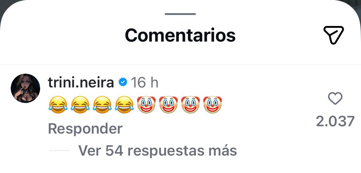 Trini comentó la publicación con una serie de emojis de caras riendo y luego emojis de payasos, lo que fue ampliamente viralizado por los internautas.