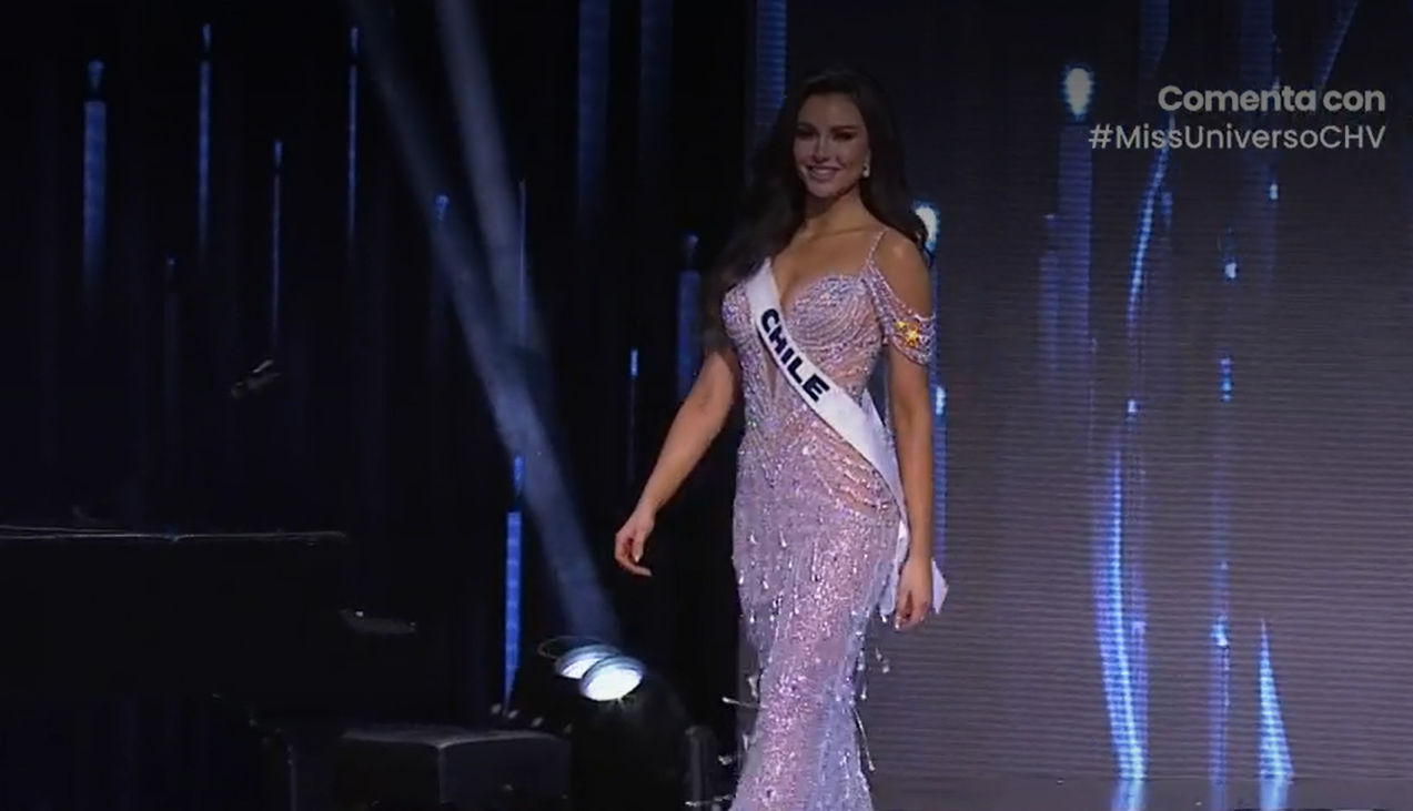 Tras clasificar como semifinalista en el Top 12 del certamen de belleza, Emilia Dides compitió en la pasarela con su vestido de gala con el fin de convertirse en una de las cinco candidatas que pasaría a la final.