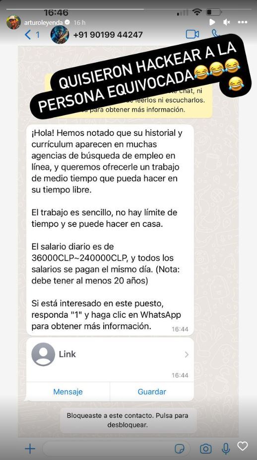 Intentaron engañar a Arturo Longton con oferta de trabajo y entregó hilarante respuesta. Fuente: Instagram.