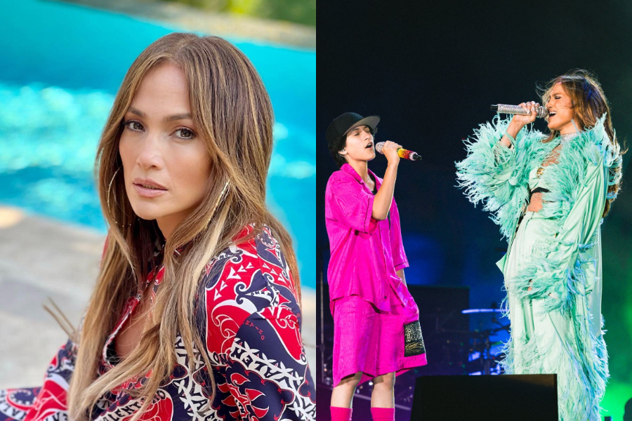 Emme se subió al escenario con un micrófono pintado de los colores del arcoíris, en alusión a la bandera de la comunidad LGBTQ+, e interpretó junto a su madre las canciones A Thousand Years de Christina Perri, e hicieron mix de Born in the USA de Bruce Springsteen y Let’s Get Loud, de López.