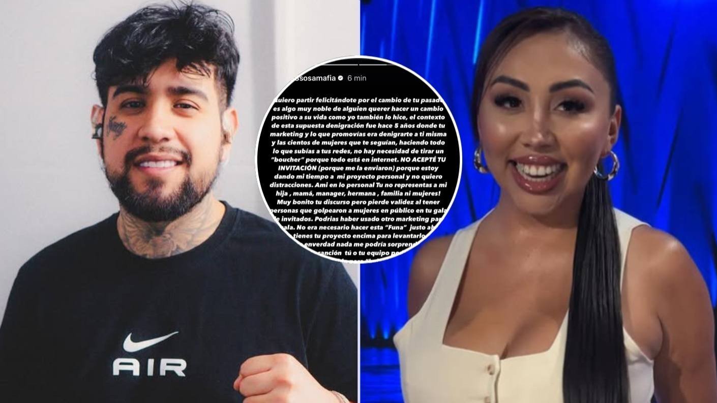 El artista urbano publicó un extenso texto en el que abordó la molestia de la influencer por una antigua canción en la que ella fue mencionada. "Te denigrabas a ti misma y a cientos de mujeres", sostuvo.
