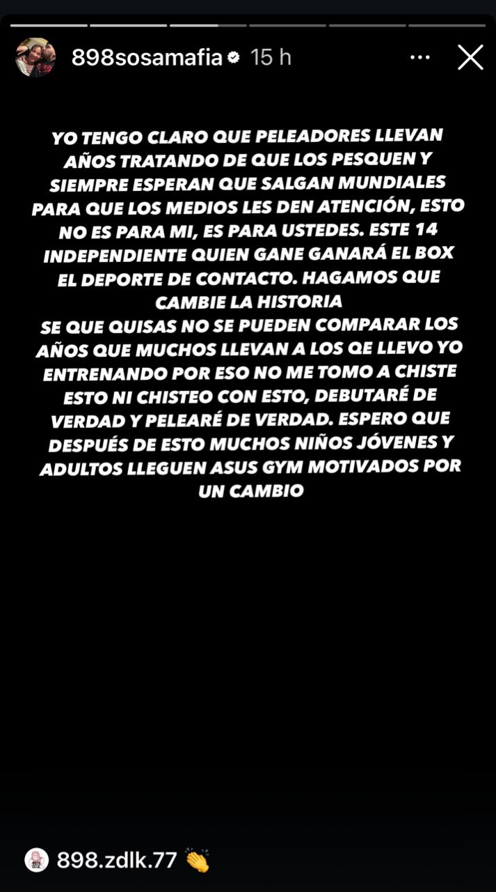 Julianno Sosa se defendió de las críticas que recibió tras anunciar su debut en el boxeo este próximo 14 de diciembre en la "Velada de Boxeo Sosa Mafia".