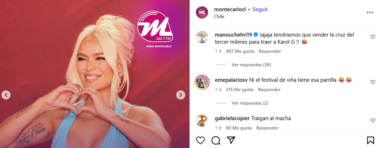 "Tendríamos que vender la cruz del tercer milenio para traer a Karol G", comentó entre risas a la posteo del medio que publicó el supuesto fichaje de la colombiana.