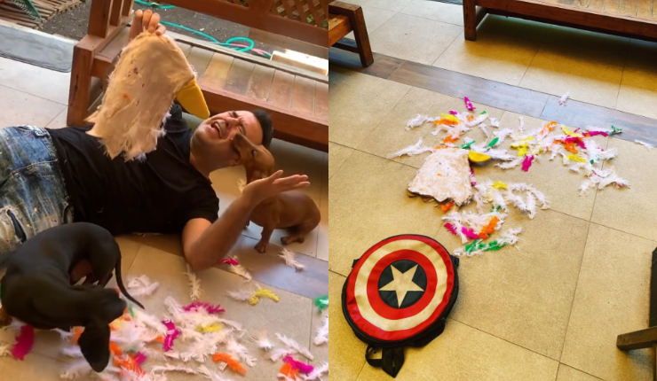 El comediante desató una ola de comentarios tras dar a conocer la "tragedia" en redes sociales. "Llegamos a la casa y estaba la embarrada. Mis perritos pescaron la mochila, la abrieron y la hicieron bolsa", explicó.