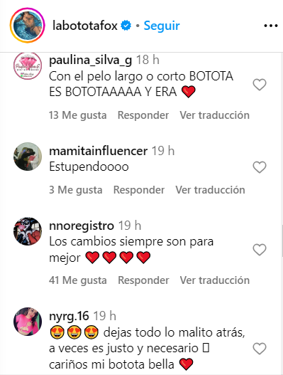 a veces es justo y necesario. Cariños, mi Botota bella", fueron sólo algunos de los comentarios de apoyo.