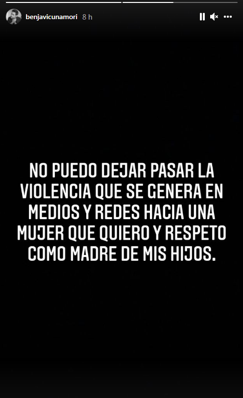 "No puedo dejar pasar la violencia que se genera en medios y redes hacia una mujer que quiero y respeto como madre de mis hijos", escribió el actor en una storie con fondo negro en su cuenta de Instagram.