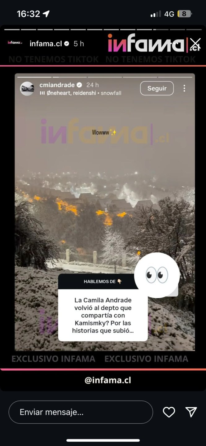 "¿La Camila Andrade volvió al depto que compartía con Kaminski? Por las historias que subió...", señaló el seguidor a través de una caja de preguntas en InFama.