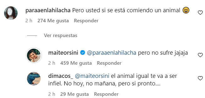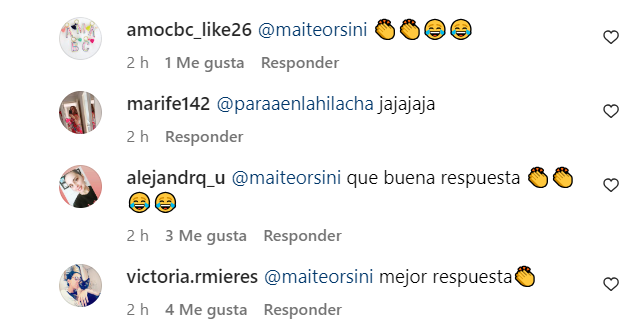 La publicación de Maite Orsini fue comentada por una usuaria (