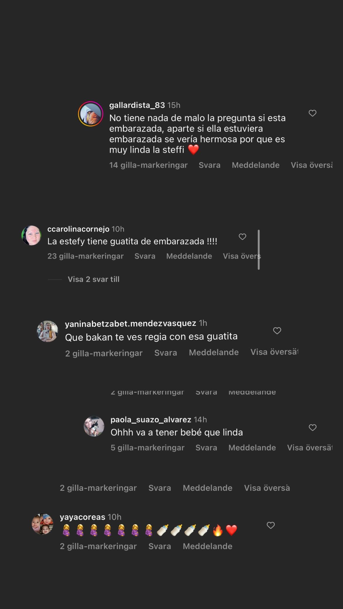 "Tiene guatita de embarazada" o "va a tener un bebé, qué linda", fueron algunos de los comentarios que la propia artista publicó en una historia en sus redes sociales.