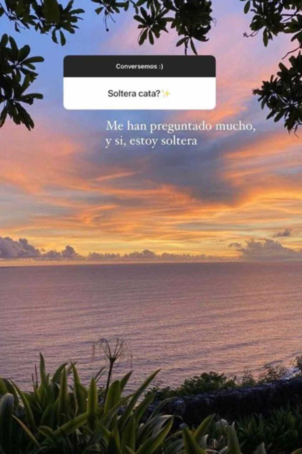 Así lo comentó en su storie de Instagram, donde respondió a la pregunta "¿soltera, Cata?", lo que contestó diciendo que "me han preguntado mucho y sí, estoy soltera".