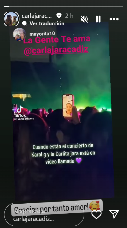 Si bien Carla Jara no asistió al concierto de Karol G en el Estadio Nacional, sí lo hizo a través de una videollamada de su hermana.