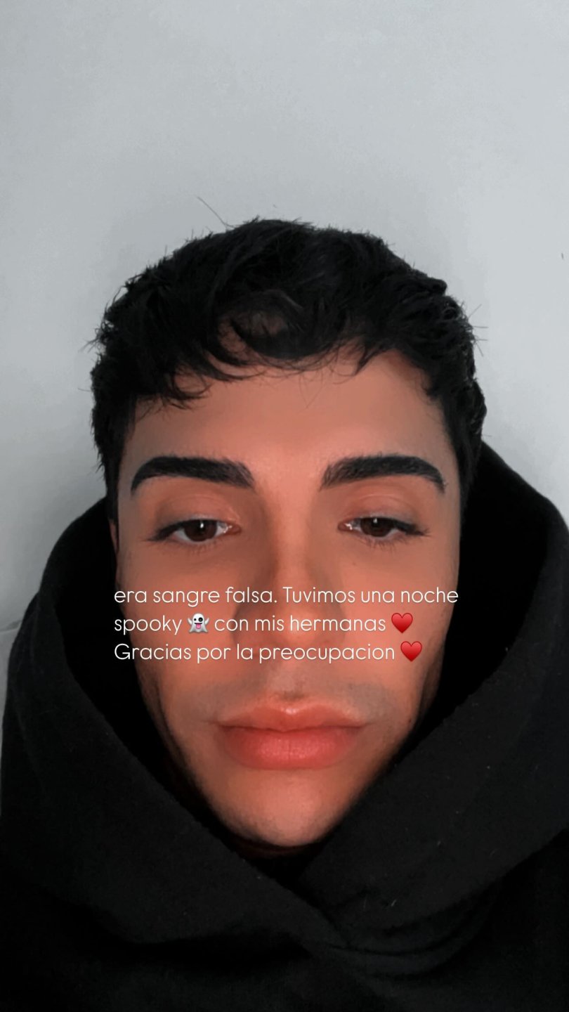 "Era sangre falsa. Tuvimos una noche spooky con mis hermanas. Gracias por la preocupación", escribió Leo Jr. en una segunda historia, mientras mostraba que su rostro está sin heridas.