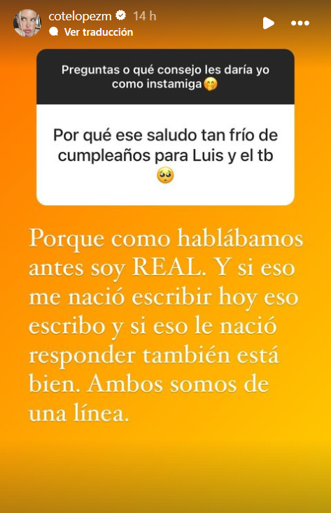 “¿Por qué tan frío el saludo de Coté por tu cumpleaños y también fría tu respuesta?”, le consultó una seguidora de Luis Jiménez en su cuenta de Instagram.