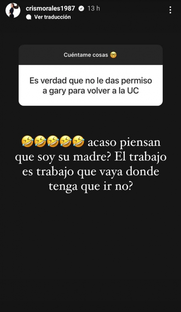 Finalmente, y en relación a lo anterior, un usuario o usuaria fue más insistente y de forma tajante le consultó si es que es verdad que ella no le da "permiso" al Pitbull para volver al plantel de la UC.