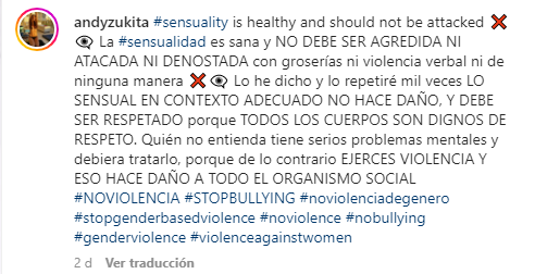 En esta ocasión, la ex integrante de Pituca sin Lucas comenzó escribiendo una publicación: "La sensualidad es sana y no debe ser agredida ni atacada ni denostada con groserías ni violencia verbal ni de ninguna manera".