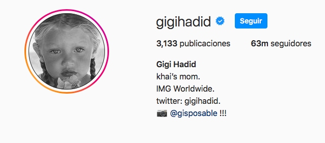 Hadid no hizo ninguna publicación en redes sociales, ni envió un comunicado o dio una entrevista. La forma en que sus fans se enteraron del nombre de la bebé fue a través de un pequeño cambio en su biografía de Instagram. Después de todo, tiene 63 millones de seguidores.