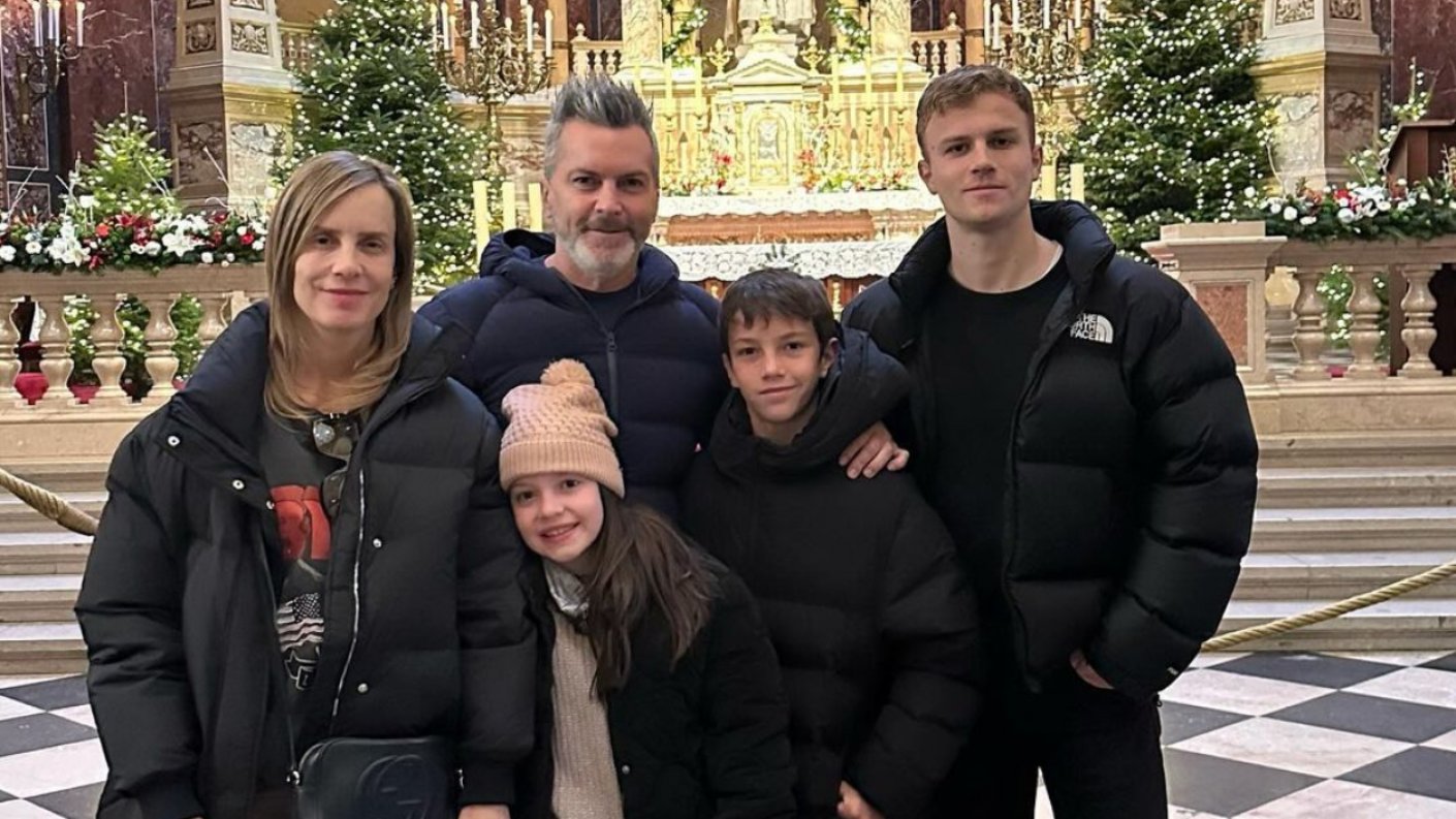 Cristián Sánchez, y sus dos hijos menores, la presentadora de televisión