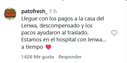 Finalmente, Pato Fresh, amigo del rapero, escribió dentro de los comentarios del video que llegó al inmueble a tiempo en compañía de Carabineros, quienes ayudaron a trasladar al artista a un recinto asistencial, manifestando que estaba "descompansado", pero "a tiempo".