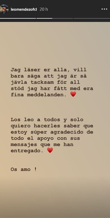 “Los leo a todos y solos quiero hacerles saber que estoy super agradecido de todo el apoyo con sus mensajes que me han entregado. Os amo”, agregó en una nueva publicación.