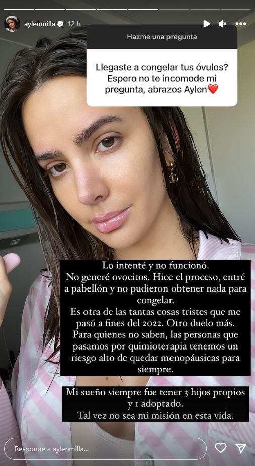 Por último, Aylén Milla contestó sobre si congeló sus óvulos. "
