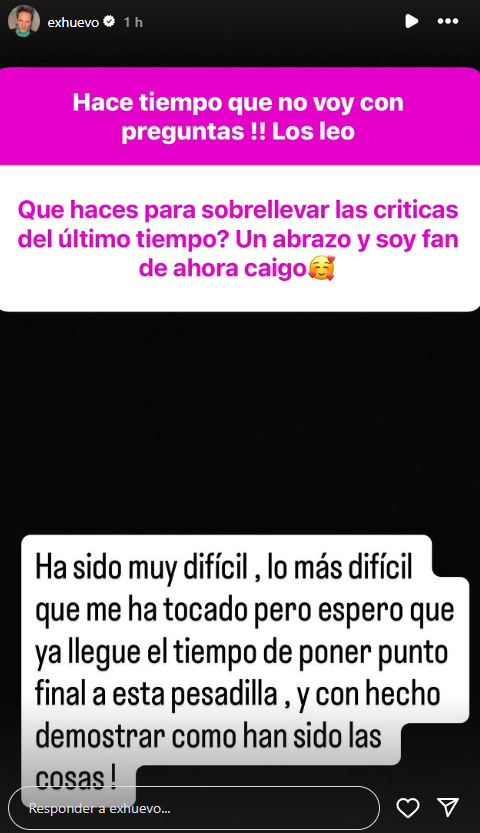 En sus historias de Instagram, el conductor radial habilitó un buzón de preguntas para interactuar con sus fans, quienes comenzaron a consultarle cómo ha enfrentado las críticas en el último tiempo.