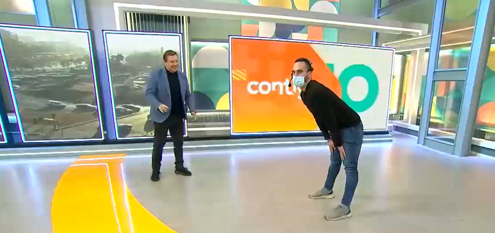 Marcos realizó el popular paso en el piso. “Espero les haya gustado”, señaló al terminar. Pero no solo eso, porque también les enseñó a los conductores a perrear.