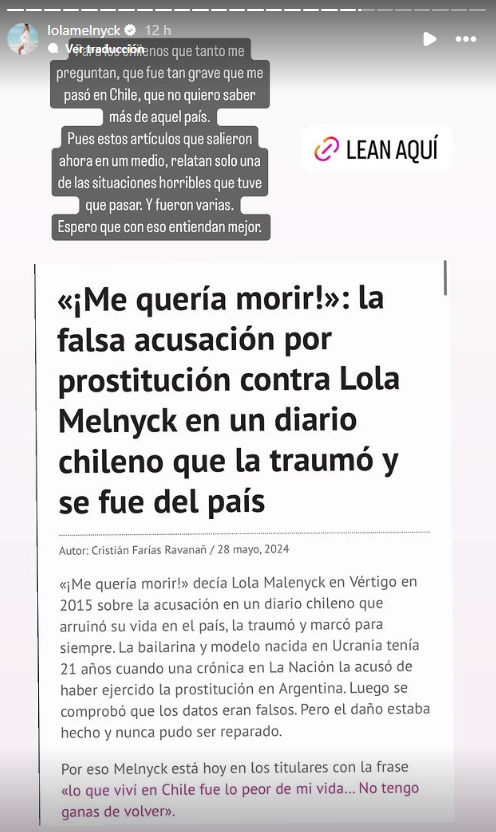 Este episodio habría sido crucial para que Lola Melnyck decidiera salir de nuestro país y radicarse en Brasil. Lo que fue confirmado recientemente en su Instagram tras compartir esta nota.