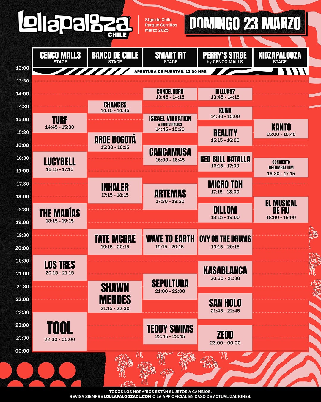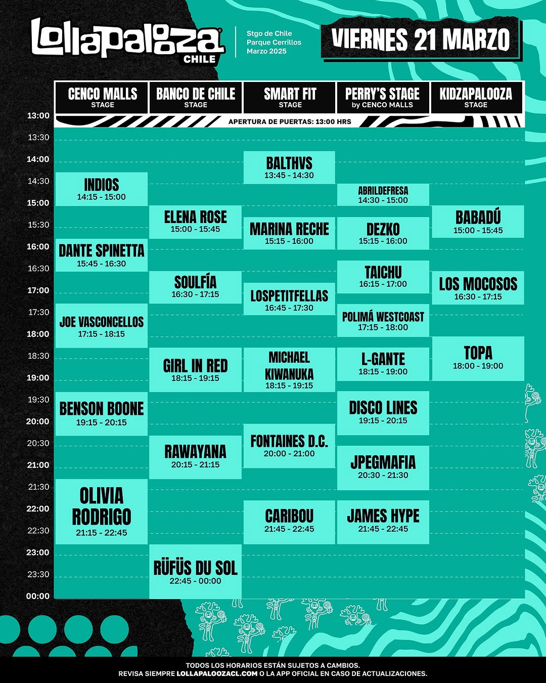De esta manera, la programación final de Lollapalooza Chile 2025 quedó de la siguiente manera: