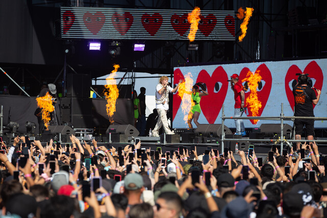Con el pasar de los minutos, la gente corrió al Perry's Stage para ver a Polimá WestCoast y con razón, ya que fue un show que contó con sorpresas, como la participación de Marcianeke y Harry Nach, entonando canciones como "Moneyman", "Tiki Tak" o "Pa qué te Enojái".