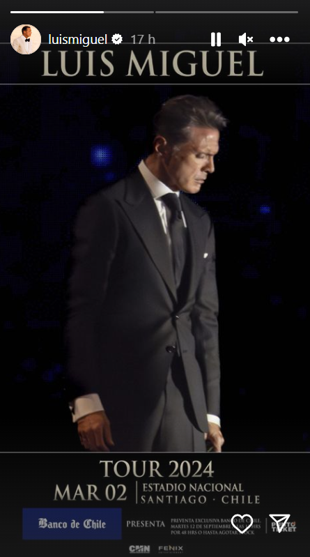 A través de sus stories de Instagram, Luis Miguel confirmó que el show que tiene agendado para el próximo 2 de marzo será en el Estadio Nacional. Instagram