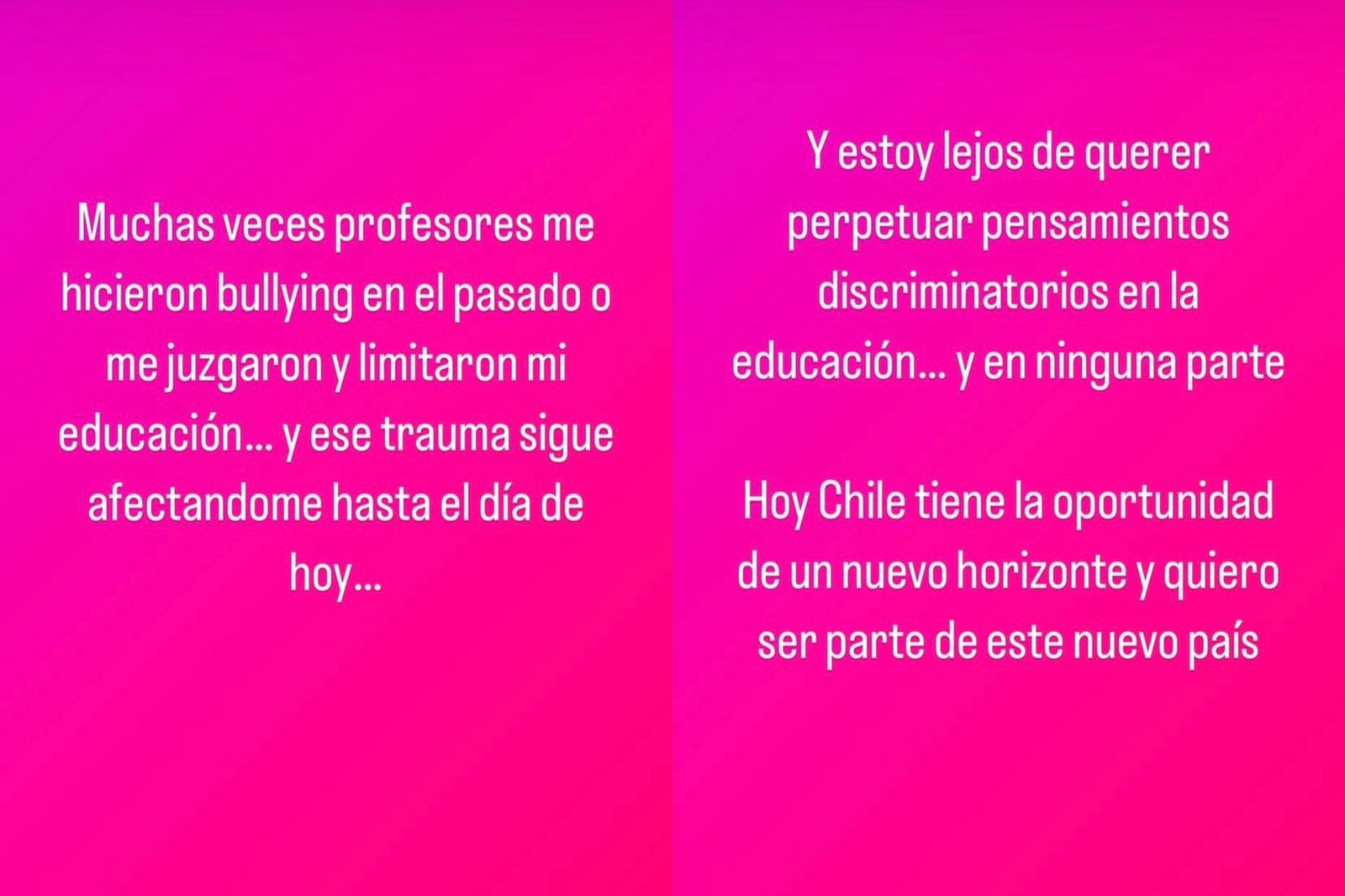 La actriz respondió a los comentarios discriminatorios de una usuaria ya que "muchas veces profesores me hicieron bullying en el pasado o me juzgaron y limitaron". "Estoy lejos de querer perpetuar pensamientos discriminatorios en la educación", dijo.