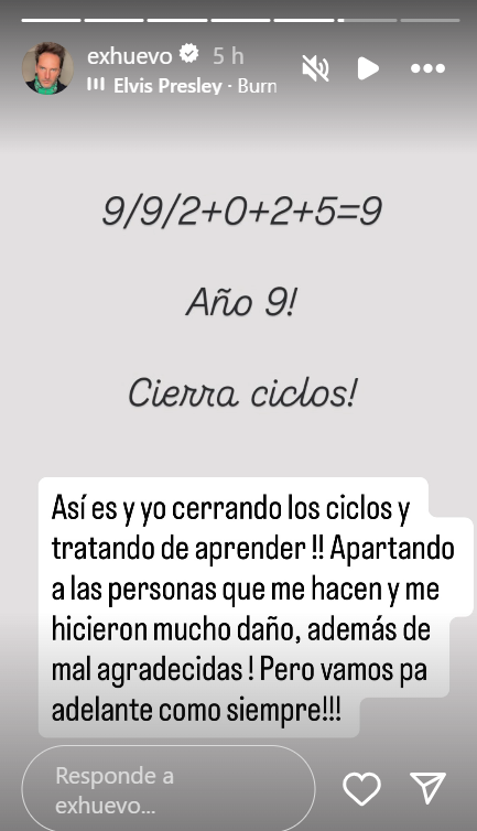 A través de Instagram, el animador escribió: "9/9/2+0+2+5=9, año 9. Cierra ciclos". Luego, sorprendió con un texto que podría estar relacionado con sus últimas polémicas.