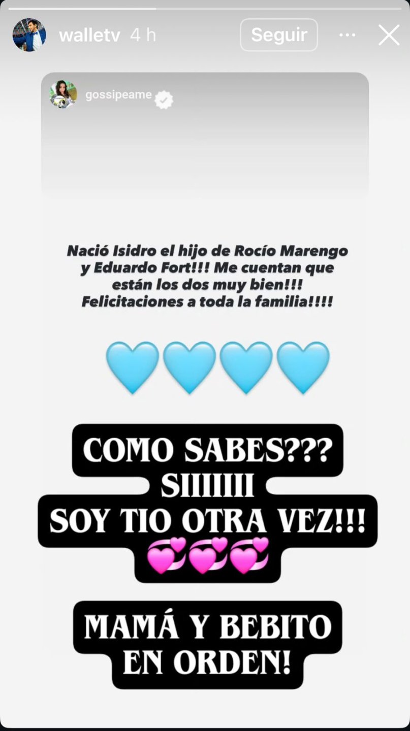 Luego, Walter Leiva, amigo de Rocío reposteó la publicación y confirmó la noticia: "¿Cómo sabes? ¡Sí! ¡Soy tío otra vez! ¡Mamá y bebito en orden!".