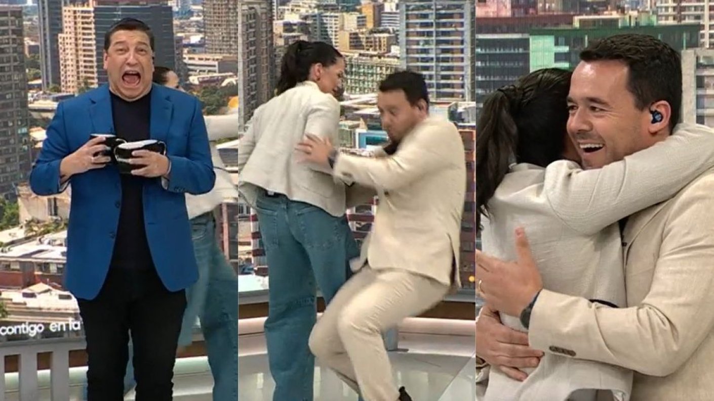 Como demostración, la animadora, junto a de la Iglesia, procedieron a simular una escena, la cual finalizó con la sorpresiva maniobra.