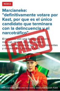 Esto, luego de que en la web se masificara un pantallazo de una supuesta noticia que involucraba al exponente de la música urbana, en la que se muestra que votaría por José Antonio Kast en las próximas elecciones. En la publicación se podía leer lo siguiente, "Definitivamente votaré por Kast, porque es el único candidato que terminará con la delincuencia y el narcotráfico".