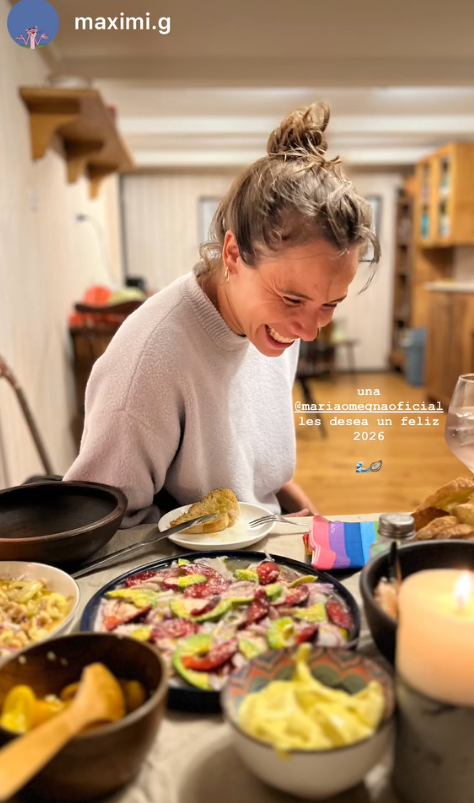 "Noche de Año Nuevo", escribió Omegna en una historia, mostrando el aperitivo que tenían preparado para recibir el 2026.