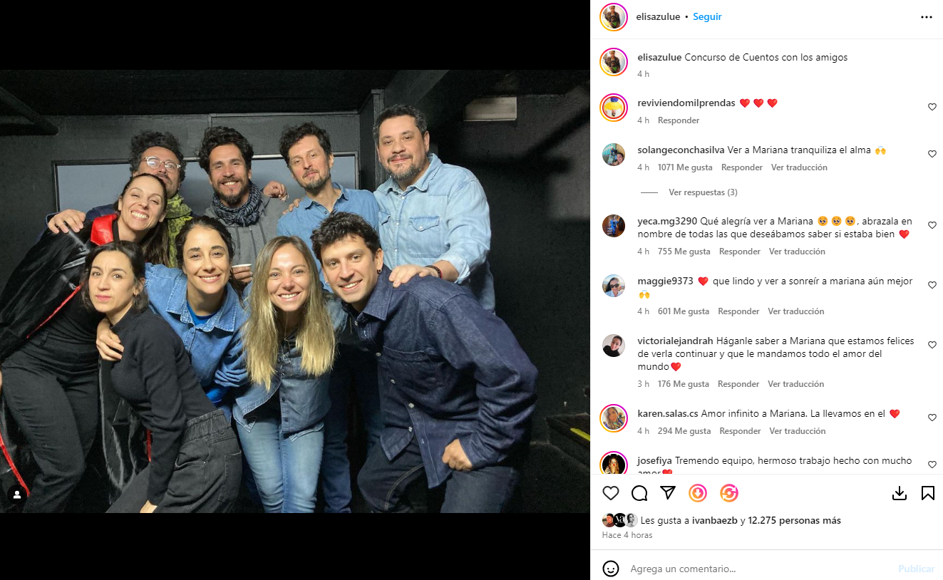 "Concurso de Cuentos con los amigos", posteó Zulueta hace un par de horas junto a una fotografía con los actores Max Salgado, Josefina Yañez Atria, Mariana Derderián y el compositor Pablo Ilabaca.