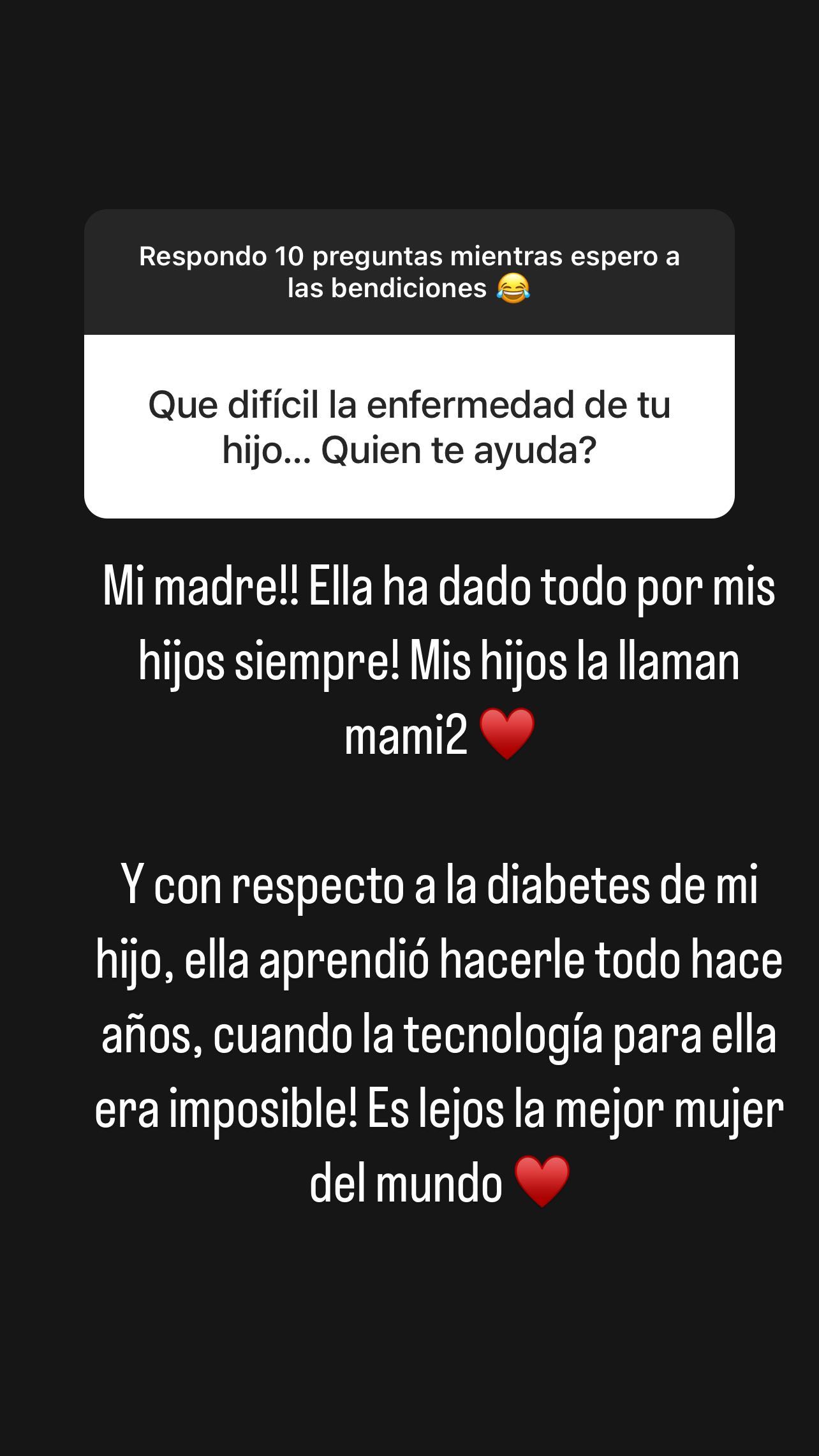 Al respecto, afirmó que el apoyo de su madre ha sido fundamental en este tiempo. "Ella ha dado todo por mis hijos, siempre. Mis hijos la llaman mami 2".
