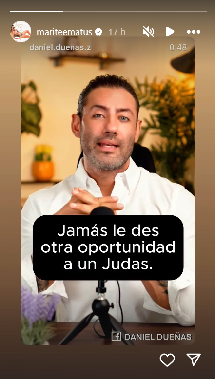 “Jamás le des una oportunidad a un Judas que estuvo sentado en tu mesa, que compartió tu pan, que miró a tu familia a los ojos y aún así te traicionó. Una cosa es equivocarse, pero otra muy distinta es ser un malagradecido”, señala parte del mensaje.