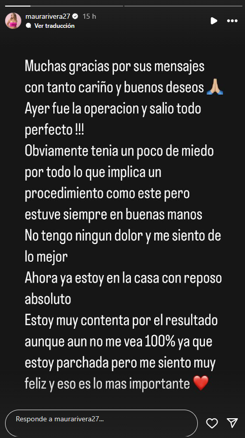 Maura Rivera actualizó su estado de salud tras someterse a una esperada operación, según lo que relató en sus redes sociales.