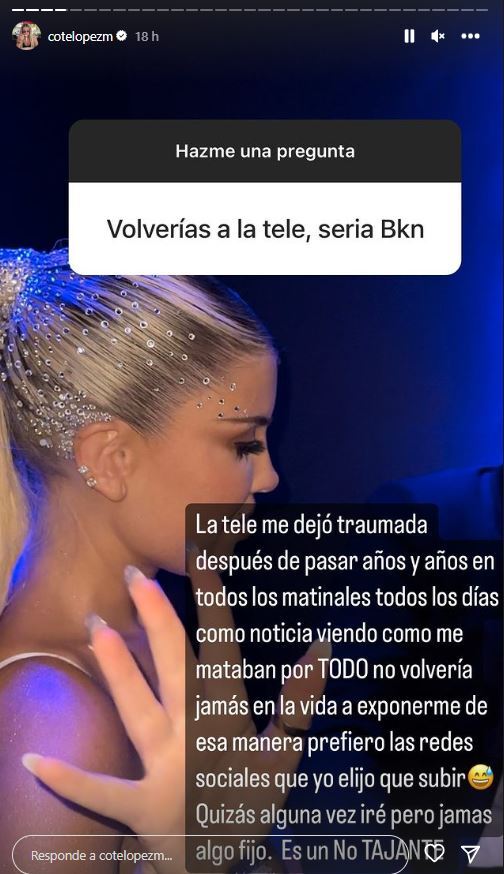 La empresaria e influencer se encargó de contestar diversas preguntas de sus seguidores, quienes le consultaron sobre su posible retorno a la televisión. Respondiendo con total sinceridad, expuso lo que sintió sobre su paso por los medios y qué decidió para su futuro.