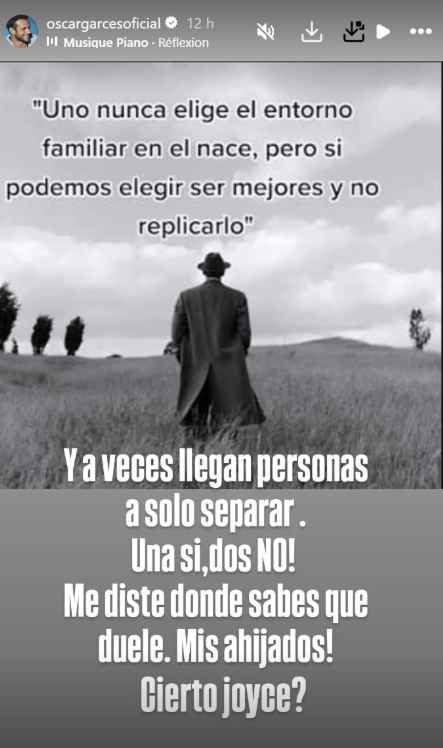 “Uno nunca elige el entorno familiar, en él nace, pero sí podemos elegir ser mejores y no replicarlo”, comenzó diciendo Óscar en su cuenta de Instagram.